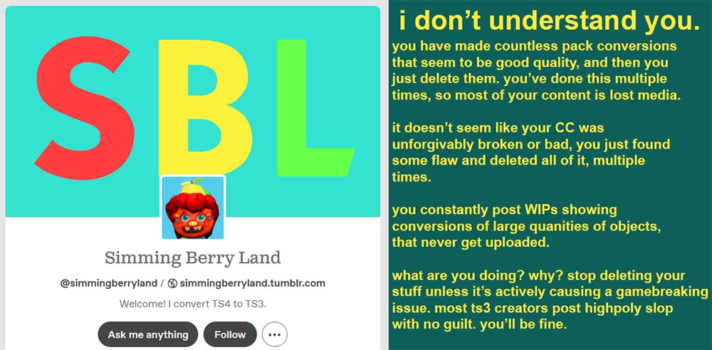 4) Secrets must be somehow related to The Sims games. Whether it's a gameplay secret or a non-game secret that uses the game to illustrate it. To count as sims-related, the secret must contain either a reference to the games or related materials OR a picture from the games, with the exception of usernames and profile/banner images, etc. Vague references to "content" or "story" are only accepted if the mods can recognize that it is in fact sims-related.